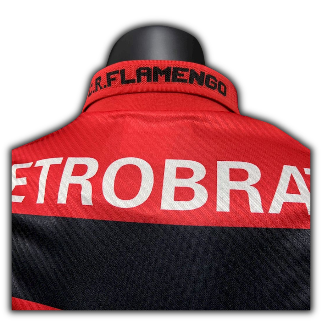 Reviva a paixão das temporadas 94/95 com a Camisa Flamengo 94/95 Home Retrô! Esta peça celebra um período marcante na história do Mais Querido, trazendo o design clássico e amado pela Nação Rubro-Negra.