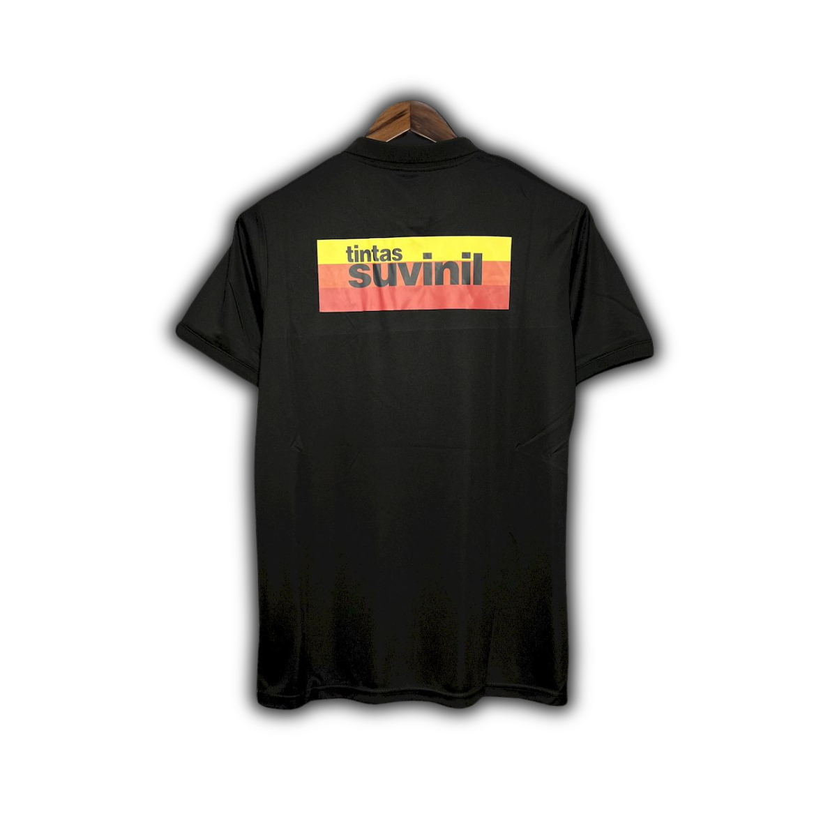 Com um design dinâmico em preto e branco, esta camisa de goleiro se destaca por um padrão gráfico diagonal arrojado, que pode incluir tons de rosa, criando um efeito de movimento. A gola em V e os punhos completam o visual imponente. O patrocinador "Suvinil" e o logo da Nike se integram perfeitamente à estética da época.