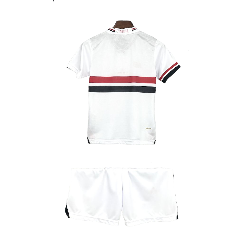 Para a temporada 25/26, a camisa principal do São Paulo chega com um design que celebra a rica história e as cores que fazem o coração da torcida bater mais forte. As clássicas listras horizontais em vermelho e preto sobre o branco imponente são o coração deste uniforme, simbolizando a grandeza, a garra e a paixão inigualável que transformaram o São Paulo em um gigante. Cada detalhe foi pensado para refletir a magnitude e a glória que só o Tricolor Paulista tem.
