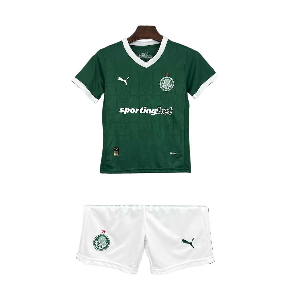 Para a temporada 25/26, a camisa principal do Palmeiras chega com um design que celebra a rica história e as cores que fazem o coração da torcida bater mais forte. O icônico tom de verde é o coração deste uniforme, simbolizando a intensidade, a garra e a identidade única do Palmeiras. Cada detalhe foi pensado para refletir a magnitude e a grandiosidade que só o Verdão tem.